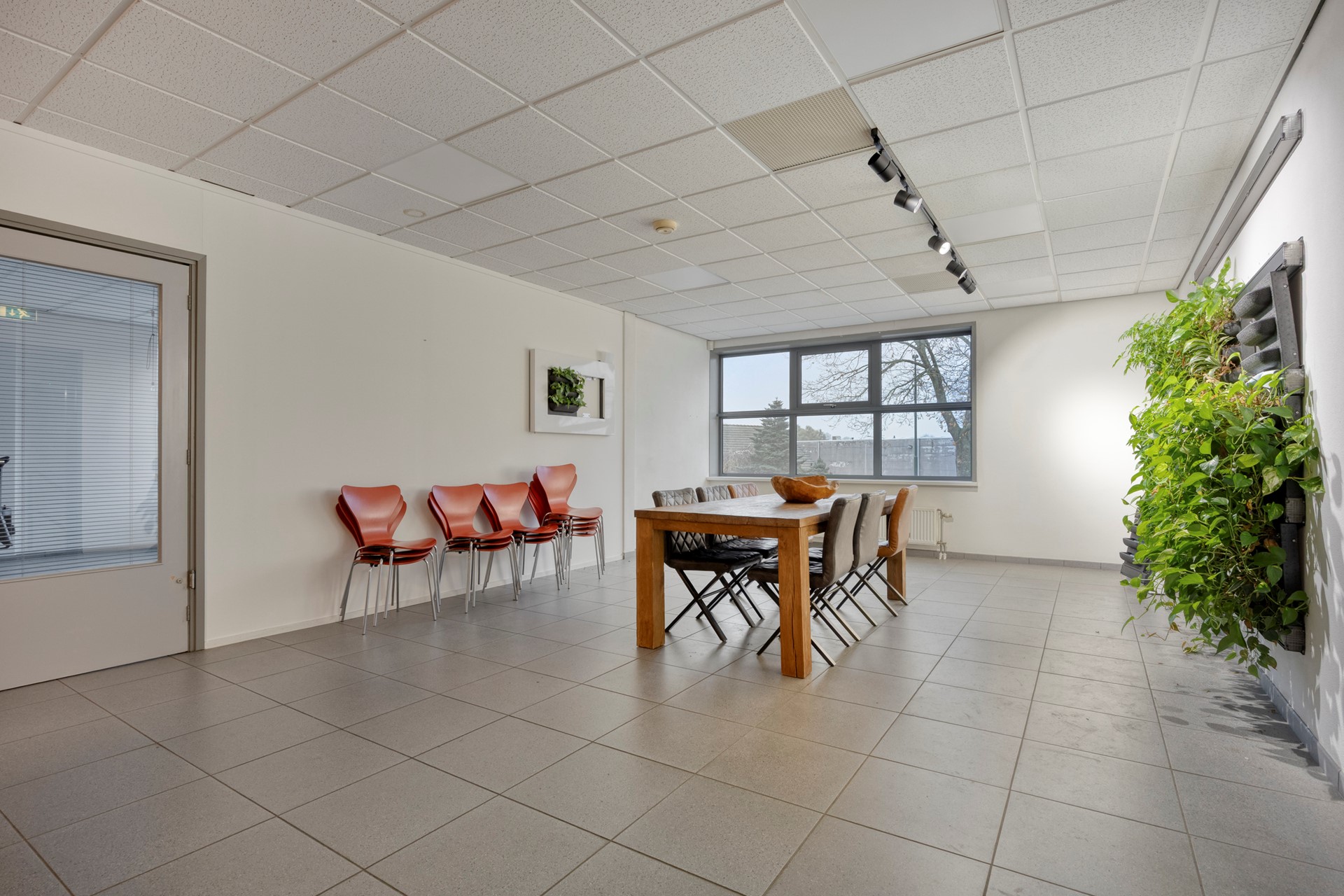 Ruime bedrijfsruimte met kantine/vergaderruimte en kantoor te huur in Woerden.