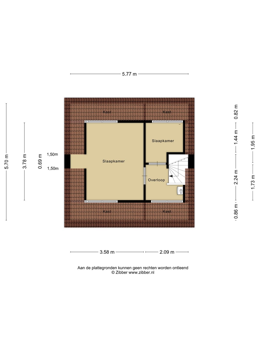 De kamers op deze verdieping hebben een hoogte van minder dan 2 meter en worden daarom niet meegerekend in de woonoppervlakte, maar bieden wél volop functionele ruimte voor slapen, werken of hobby’s.