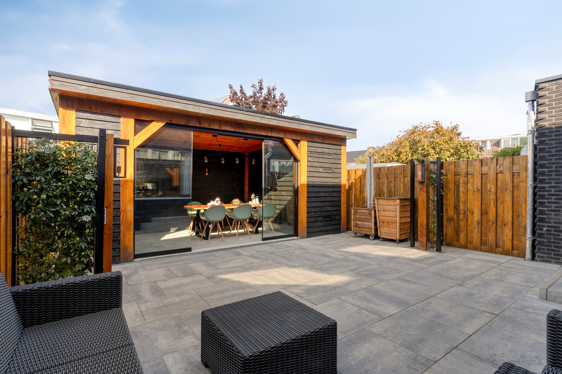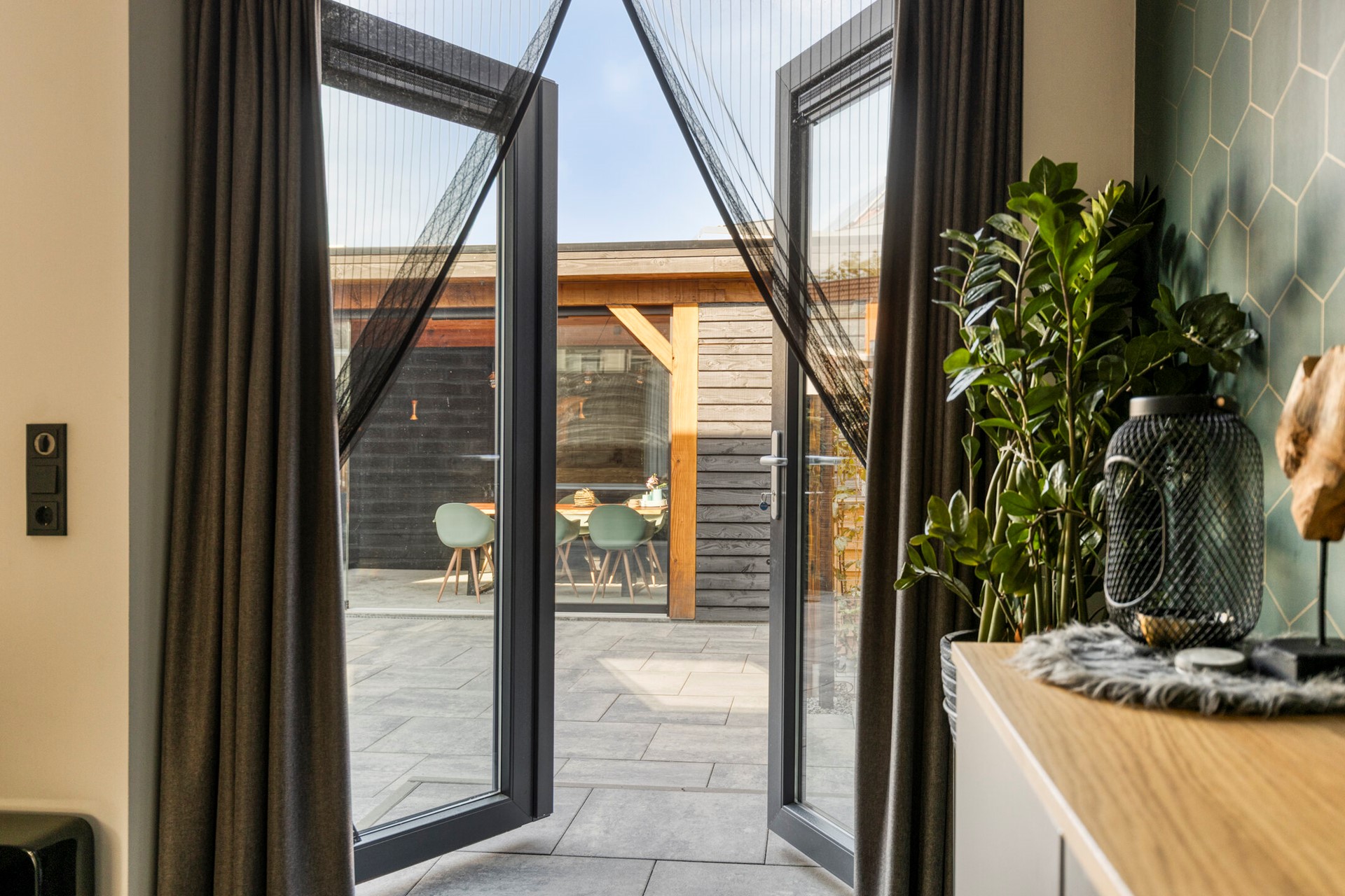 • Voorzien van een elektrisch zonnescherm aan de achtergevel
