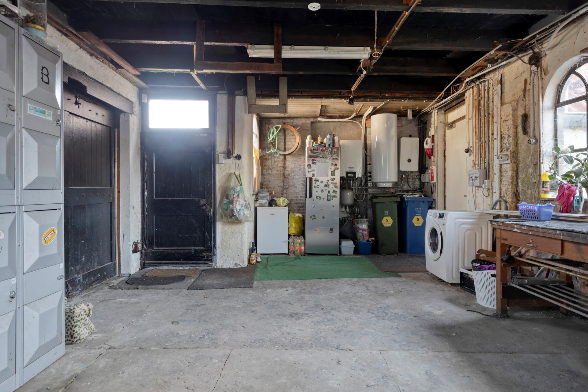 De schuur biedt volop praktische ruimte en huisvest de wasmachineopstelling, warmtepomp, elektrische cv-ketel, boiler en thuisbatterij. Daarnaast beschikt de schuur over een bergzolder en een tweede berging, ideaal voor extra opslag. Dankzij de openslaande deuren is het mogelijk om hier een auto te parkeren. De karakteristieke stalramen geven het geheel een authentieke uitstraling.