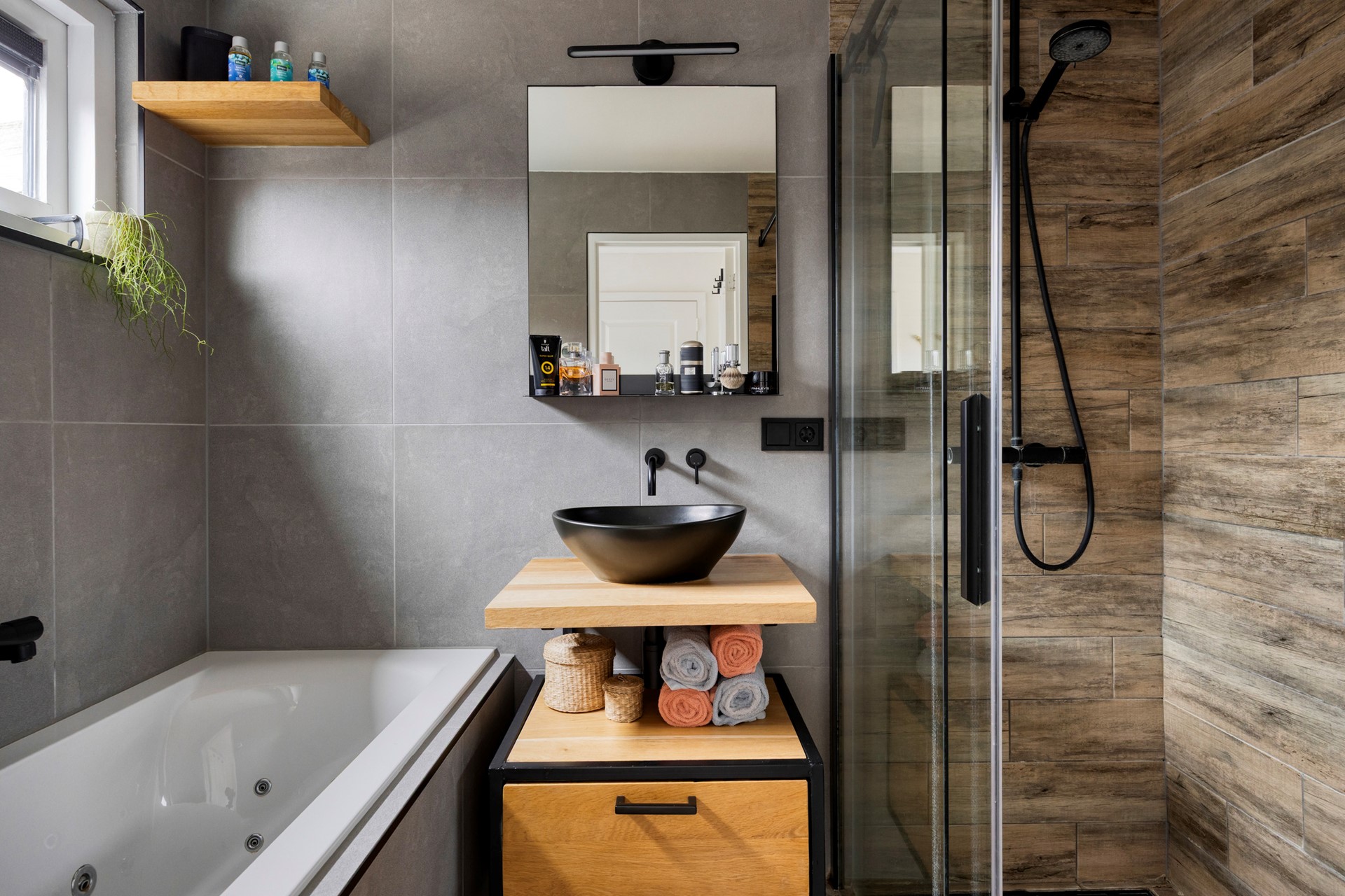 • Badkamer met whirlpool en douche met nis, vernieuwd in 2020