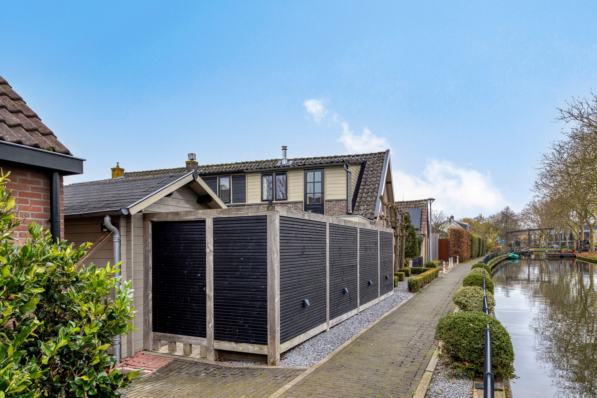 • Ruime houten berging met vliering en achterom naar het Jaagpad