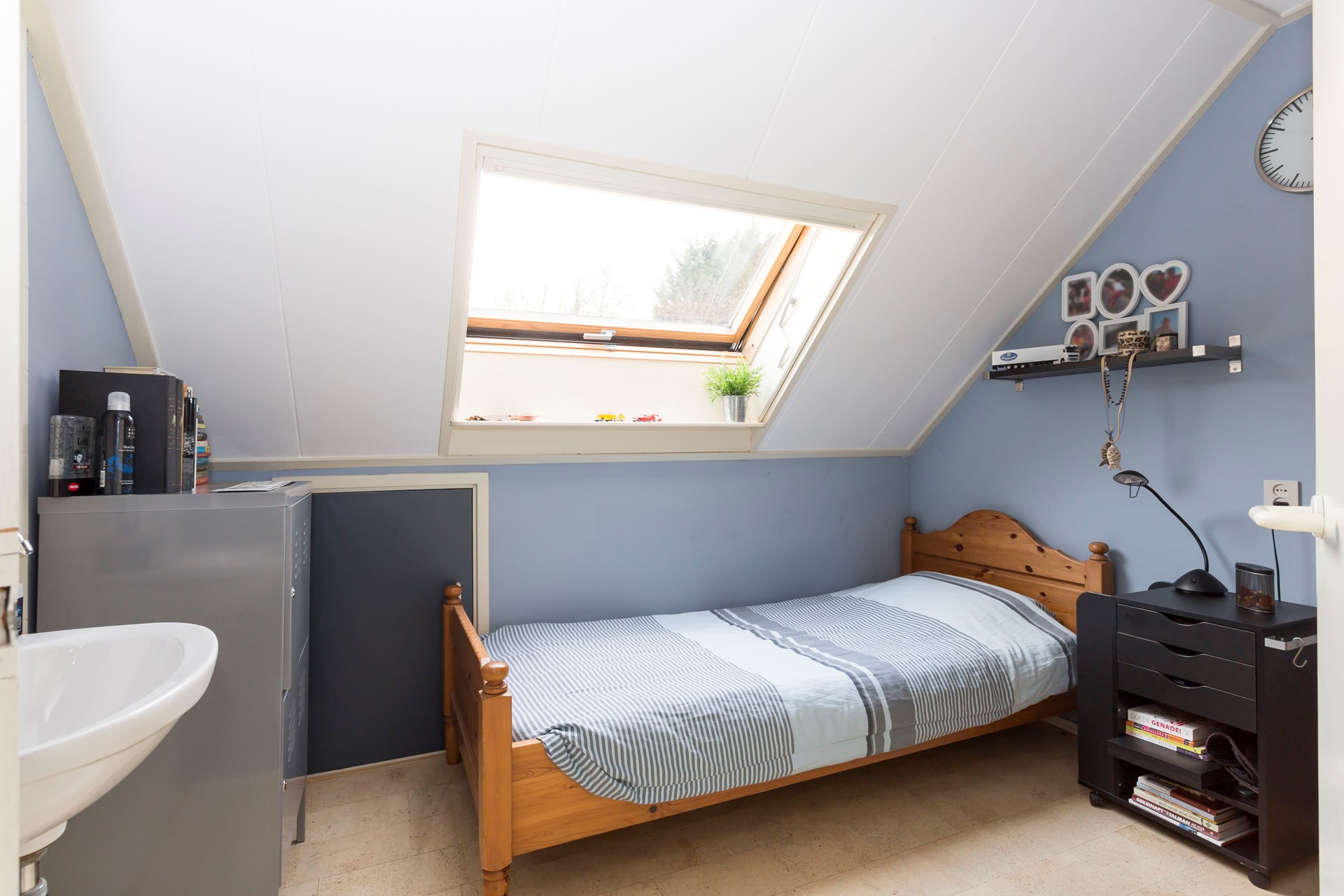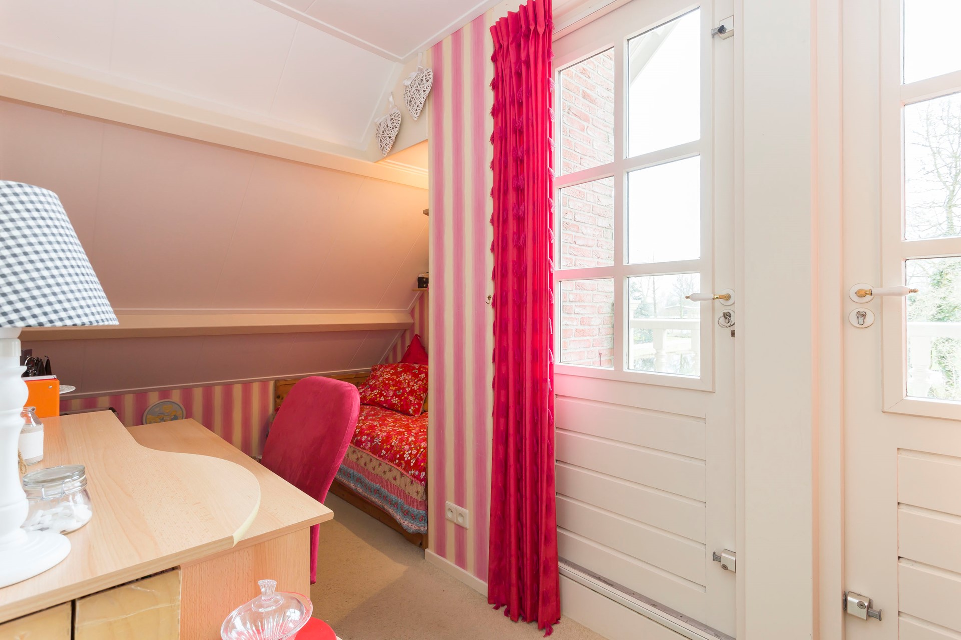 De master-bedroom ligt aan de achterzijde en is voorzien van een houten vloer, een dakkapel aan de zijkant en een balkon op het westen. Dankzij de prettige lichtinval is deze ruimte ook geschikt als atelier of werkruimte. Alle ramen zijn voorzien van rolluiken.