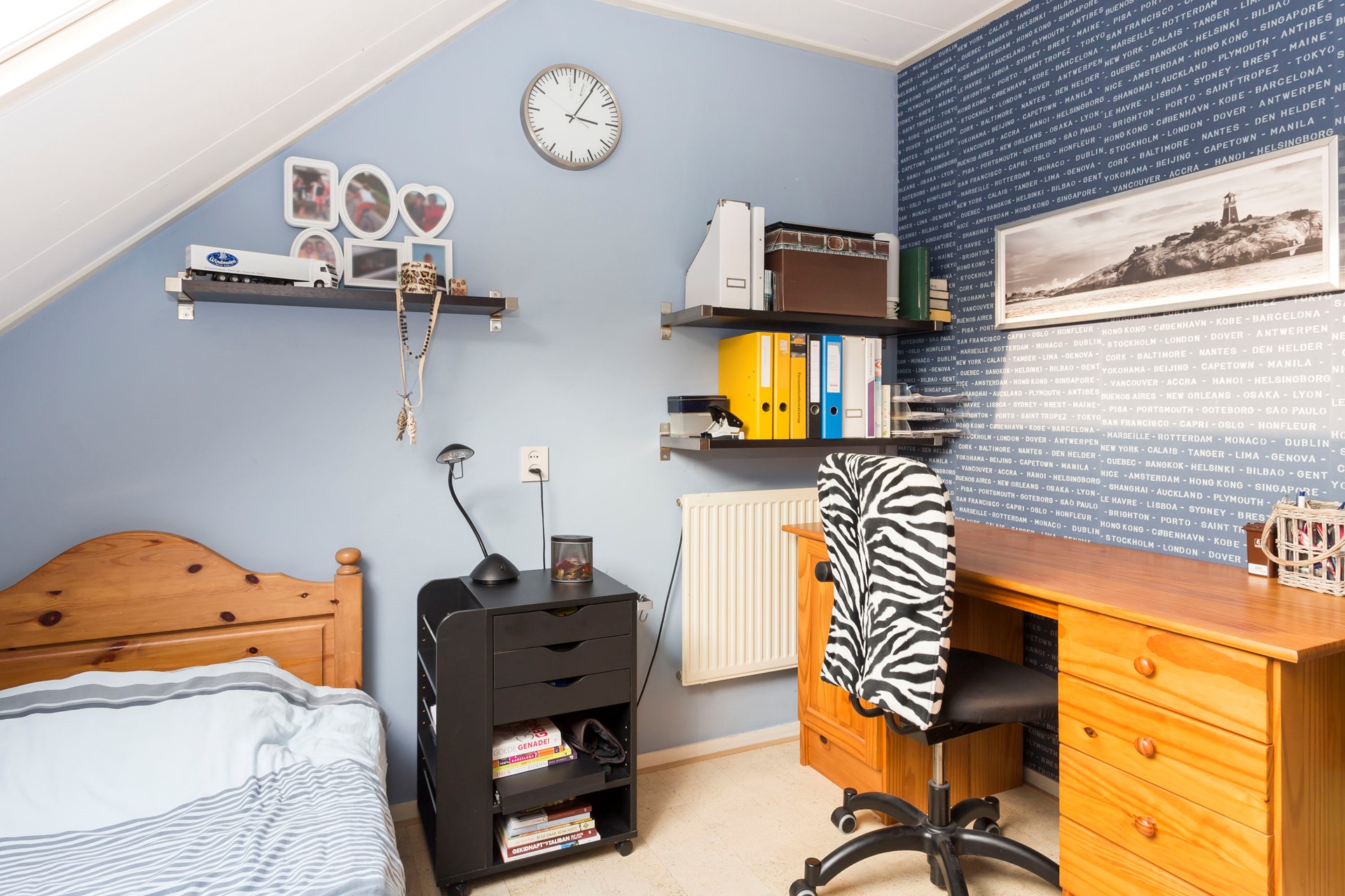 Tegenover de badkamer bevindt zich een kantoorruimte, die ook uitstekend dienst kan doen als slaapkamer. Deze ruimte beschikt over een vaste kast.