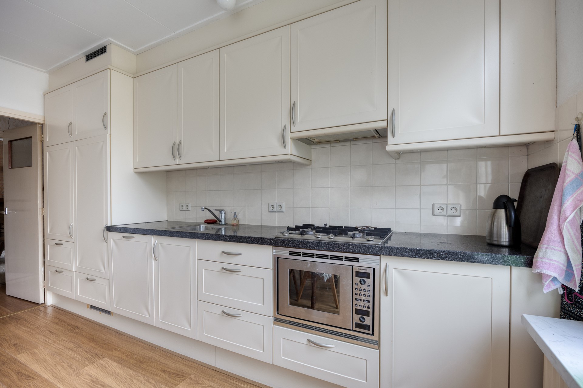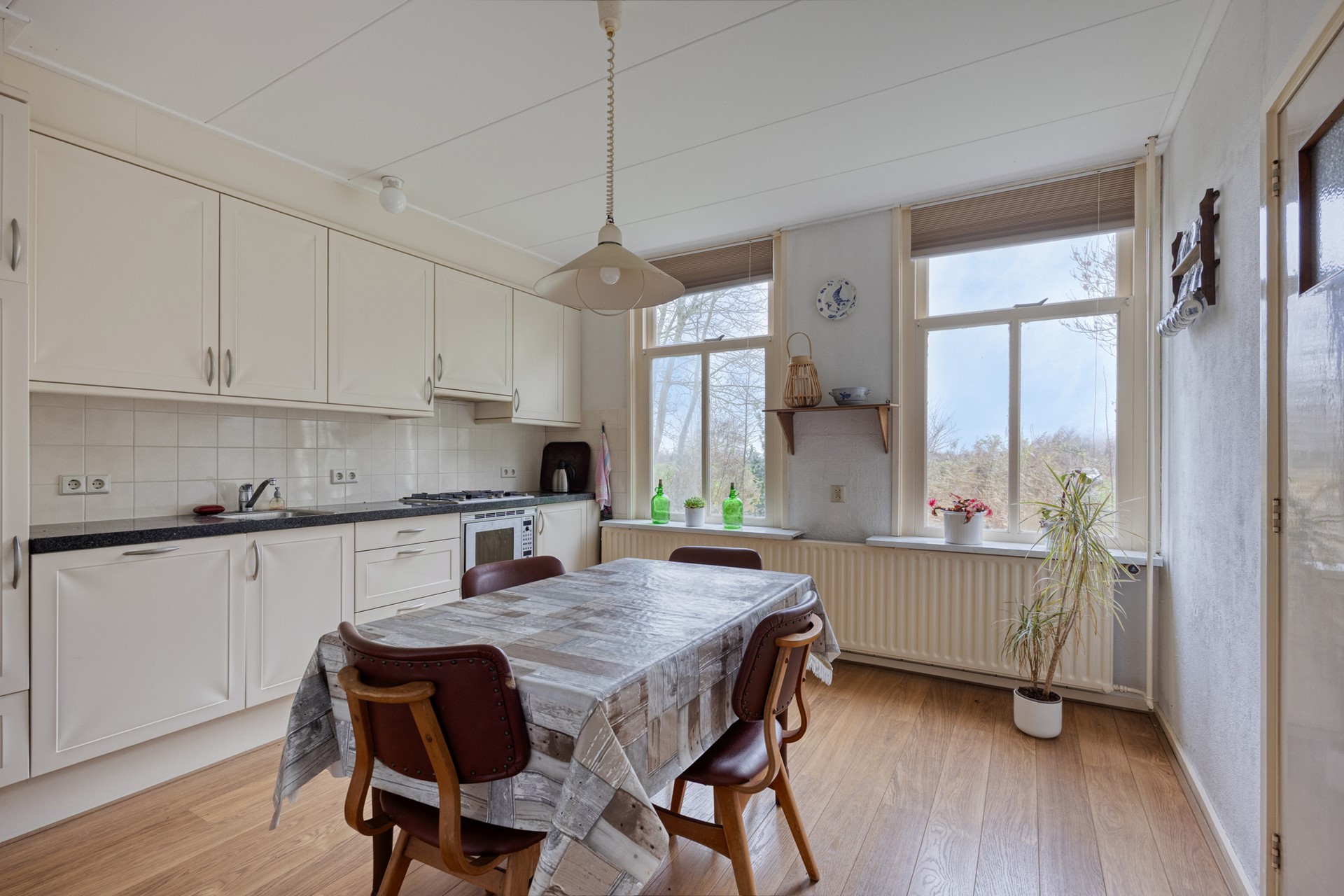 De gesloten keuken is aan de voorzijde van de boerderij gelegen en is ruim van opzet. Er is voldoende ruimte voor het plaatsen van een eettafel, waardoor hier eenvoudig een woonkeuken kan worden gerealiseerd. De keuken is opgesteld in een rechte opstelling en voorzien van een spoelbak, gasfornuis met afzuigkap, oven en veel kastruimte. Vanuit de keuken heeft u toegang tot een vaste kast en tot de badkamer.