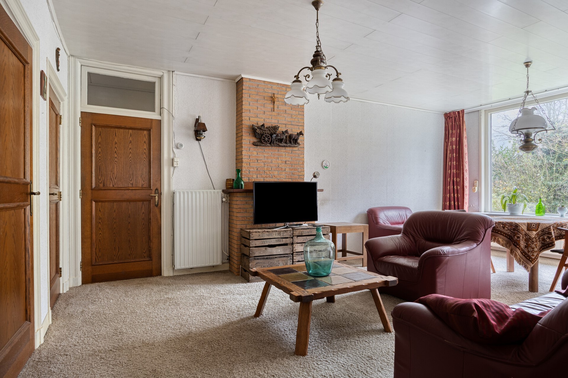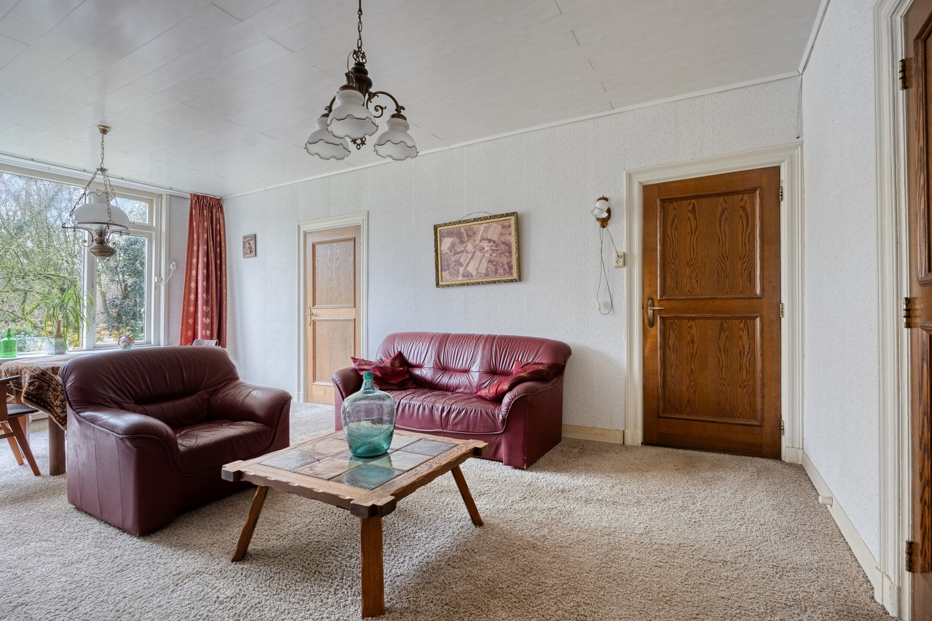 De woonkamer is centraal in de woonboerderij gelegen en biedt voldoende ruimte voor zowel een comfortabele zithoek als een gezellige eethoek. Een groot raam biedt uitzicht over de naastgelegen tuin en laat veel daglicht binnen. Vanuit de woonkamer zijn diverse ruimtes bereikbaar, waaronder de opkamer, een slaapkamer en de achtergelegen tussenhal.
