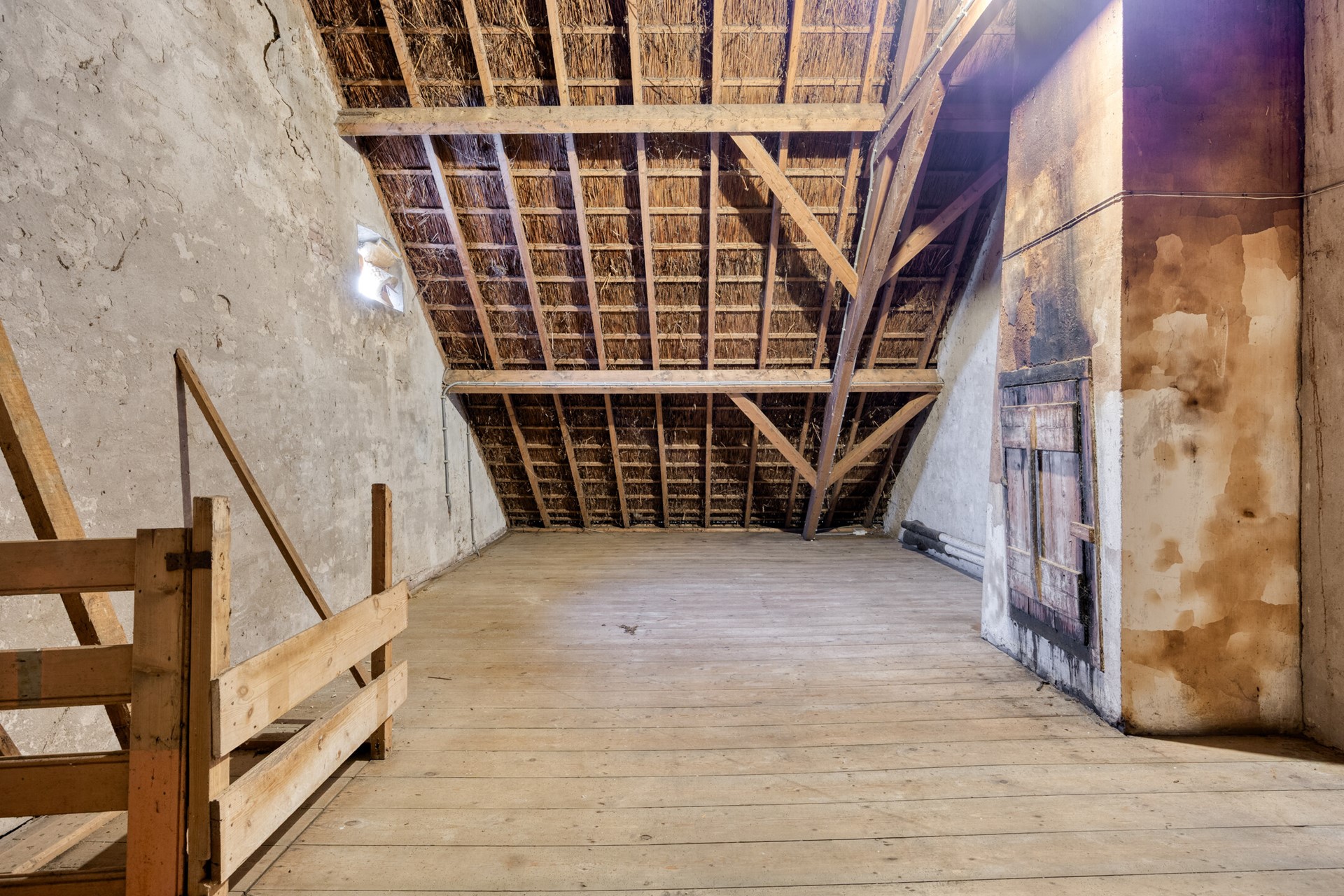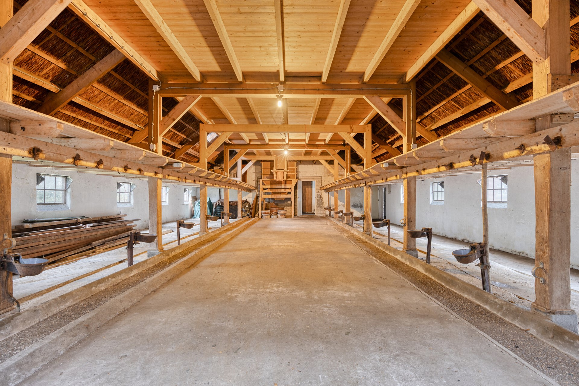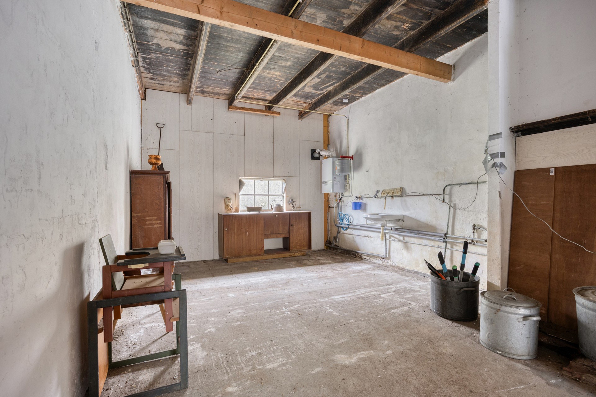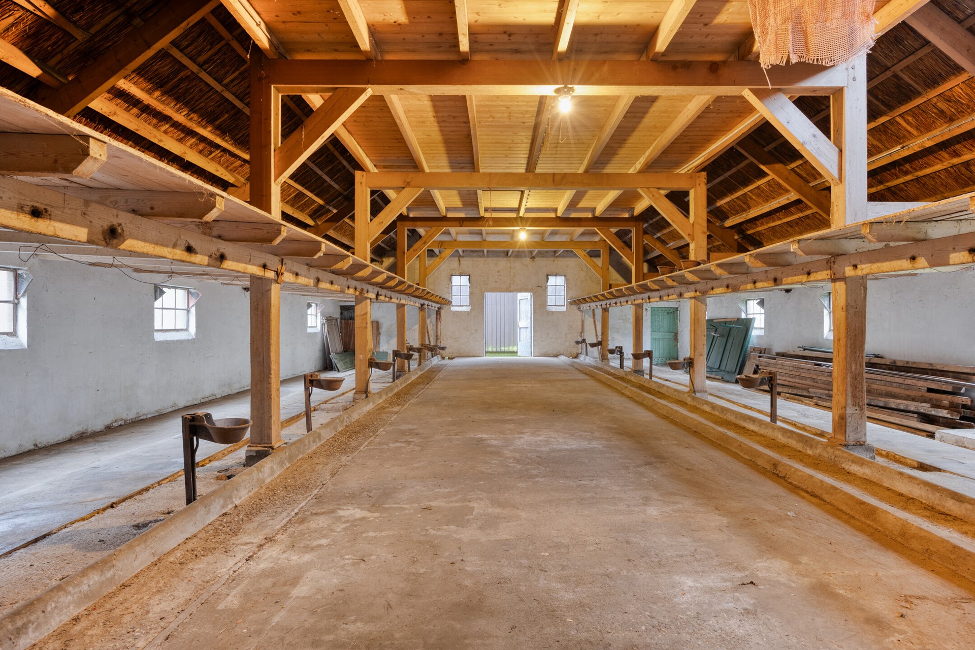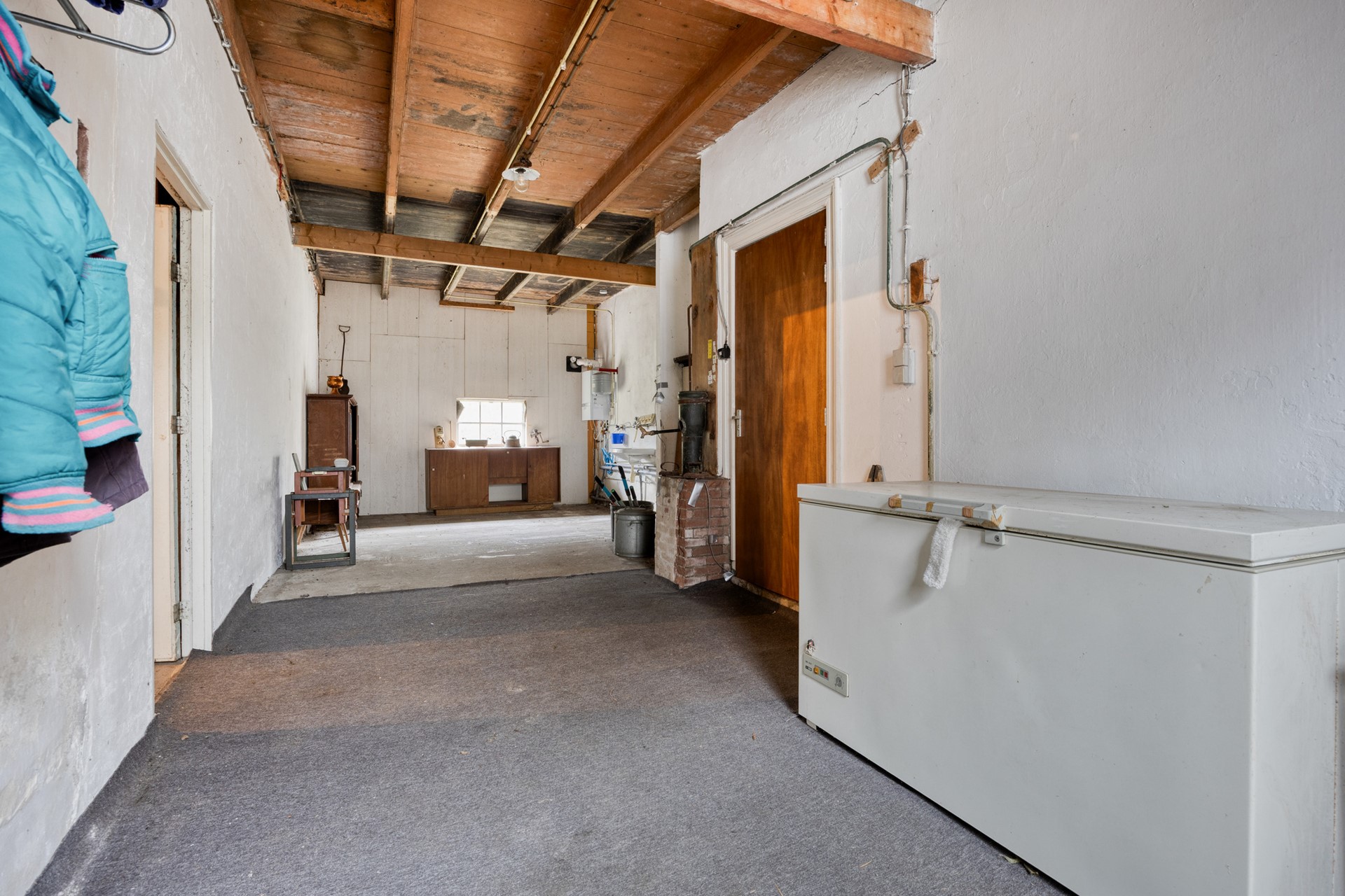 Vanuit de woonkamer en vanaf het erf komt u in een aparte hal. Vanuit deze hal heeft u toegang tot de kelder en tot de achtergelegen berging. Hier bevinden zich de aansluiting voor de cv ketel en een waterpunt. Vanuit de berging is de achtergelegen authentieke deel bereikbaar, waar vroeger de koeien stonden.