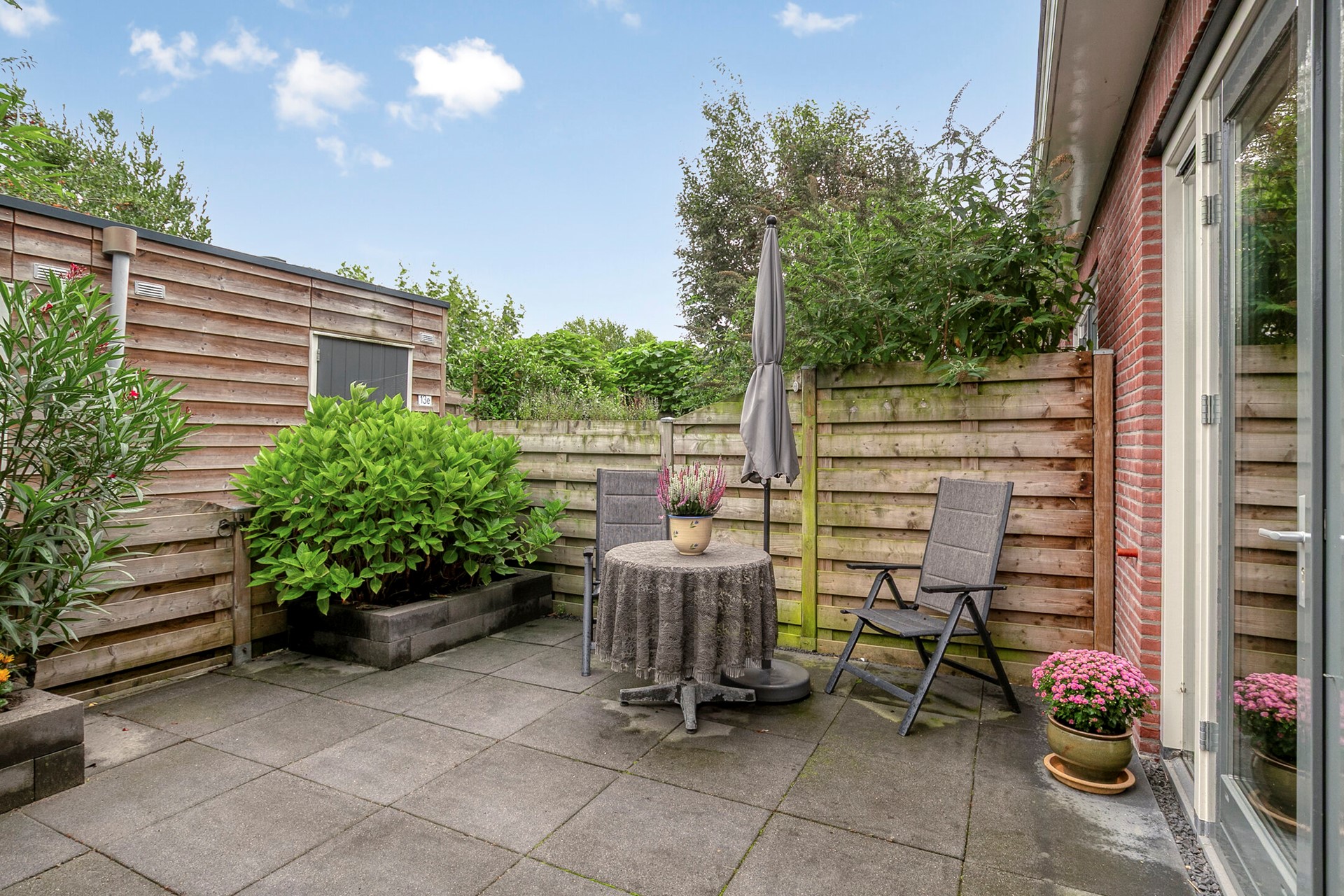 De achtertuin ligt op het oosten en is fraai aangelegd, grotendeels betegeld en voorzien van groenperken aan de achterzijde. U kunt er eenvoudig een zithoek plaatsen om van het buitenleven te genieten. De tuin is bereikbaar via een achterom, met toegang tot een losse berging.