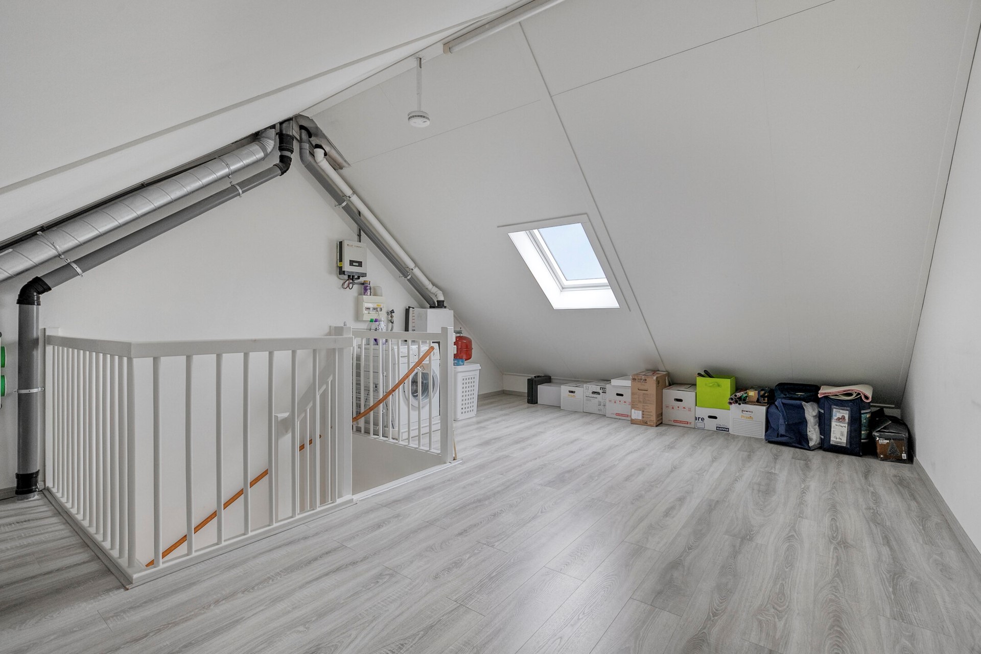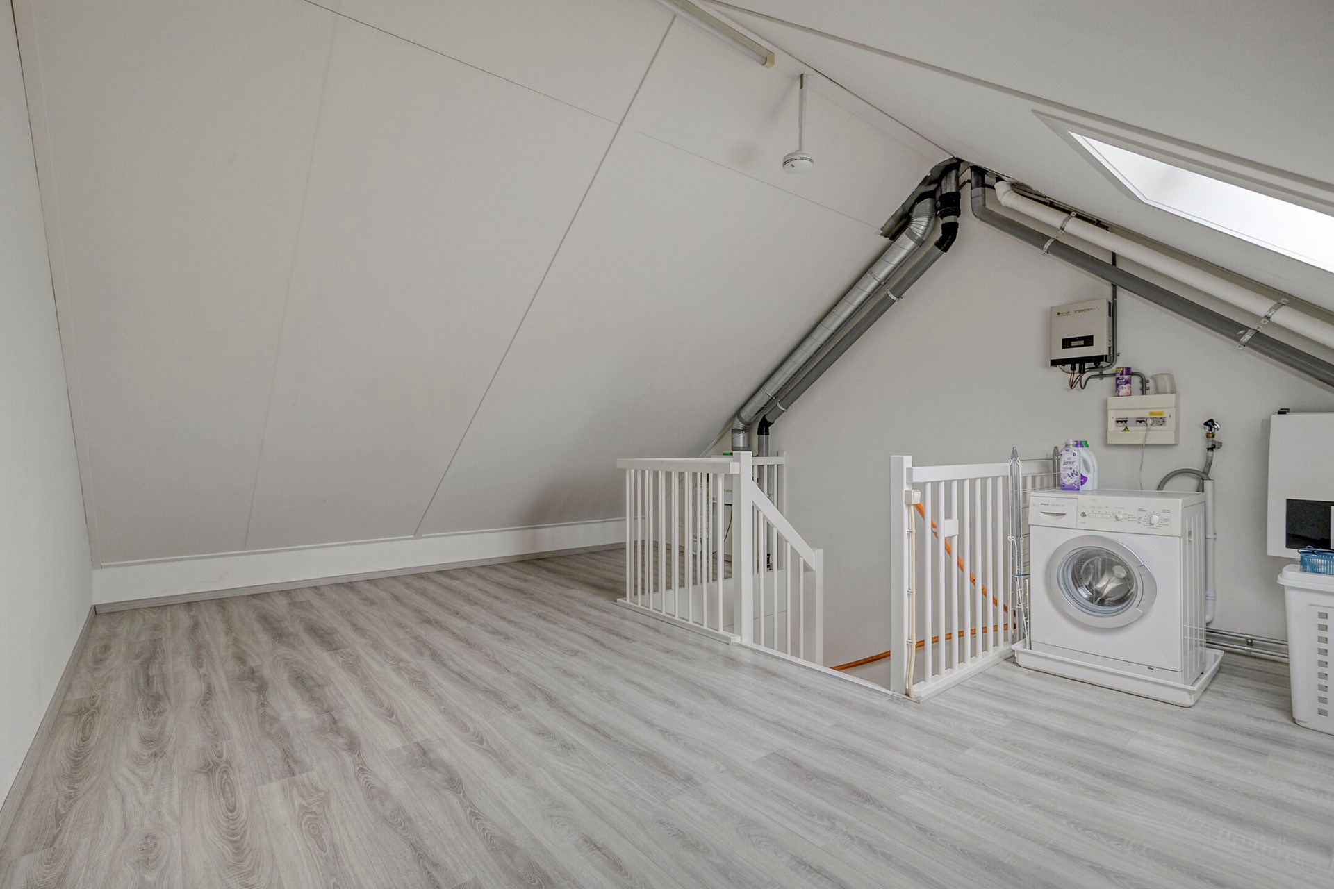 Via een vaste trap bereikt u de zolderverdieping, die momenteel in gebruik is als open ruimte. Hier bevinden zich de opstelplaats van de cv-ketel, de mechanische ventilatie en de aansluiting voor de wasmachine. Deze verdieping biedt volop mogelijkheden, bijvoorbeeld voor het realiseren van een extra (slaap)kamer of het plaatsen van een dubbele dakkapel (aan de voorzijde vergunningsplichtig) voor extra ruimte.