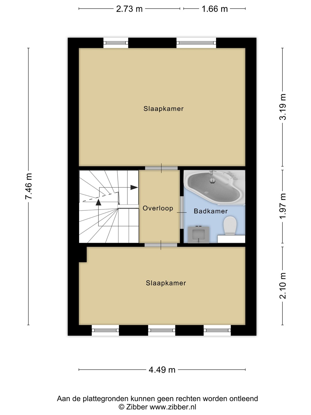 Zowel de voor- als achterzijde van de woning beschikt over een slaapkamer die over de gehele breedte van de woning loopt. Beide kamers hebben meerdere ramen, waardoor er veel daglicht naar binnen valt.