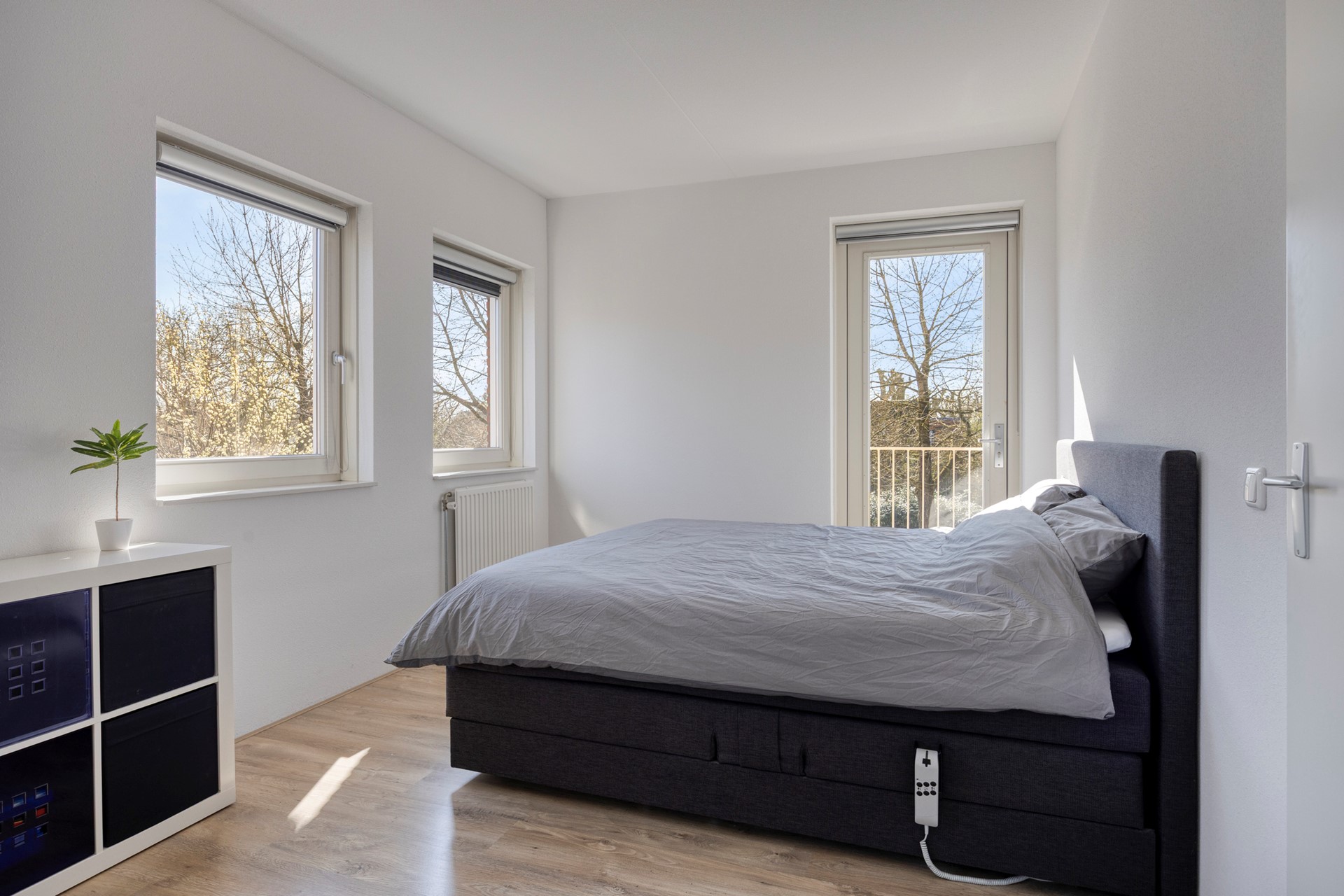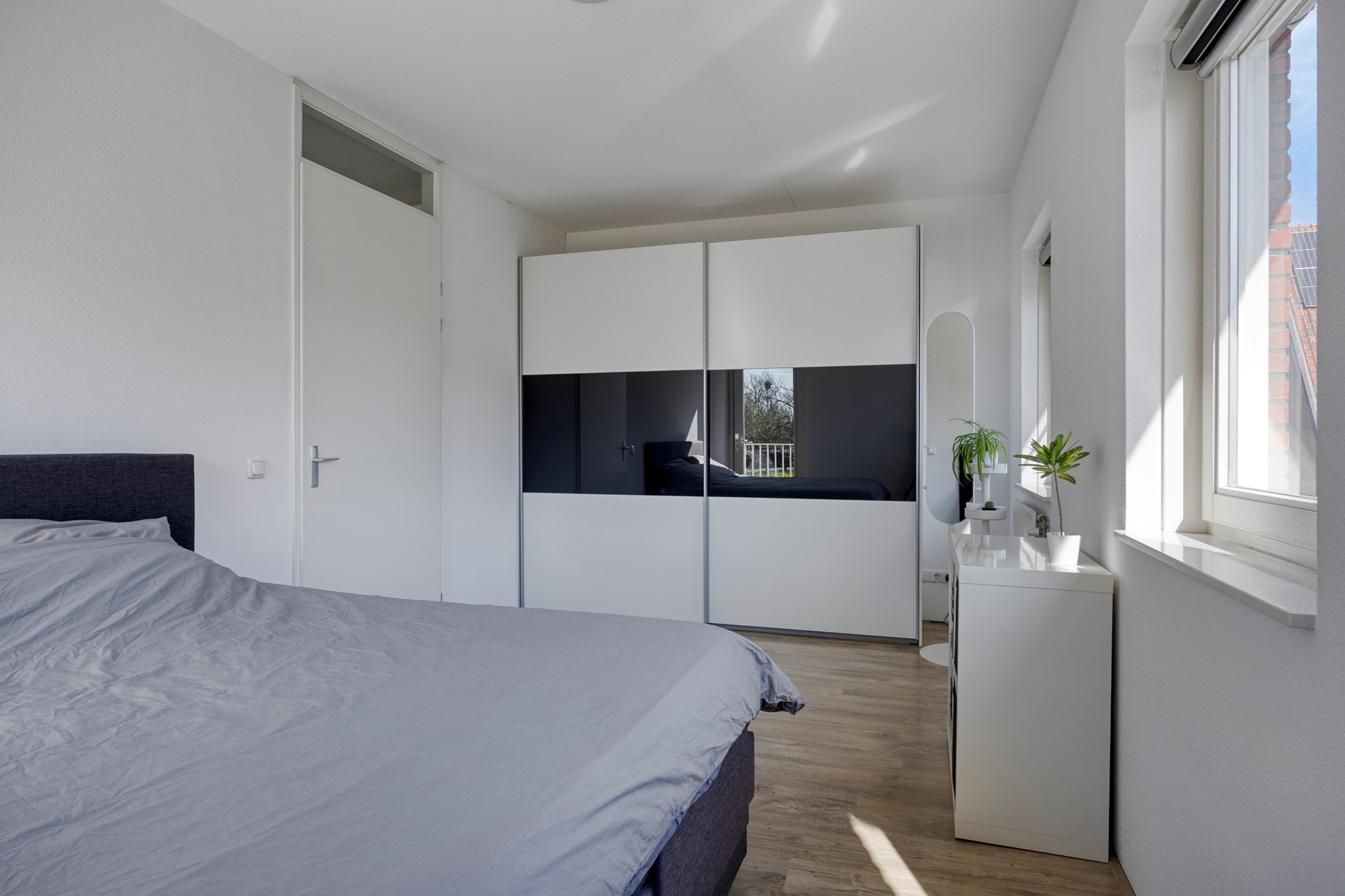 Aan de achterzijde vind je de ruime masterbedroom, met als extra pluspunt directe toegang tot het balkon op het zuiden. Een heerlijke plek om je dag ontspannen te beginnen of af te sluiten.