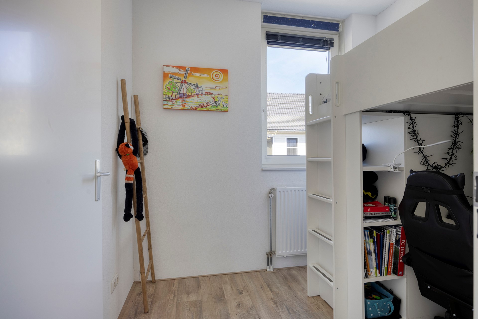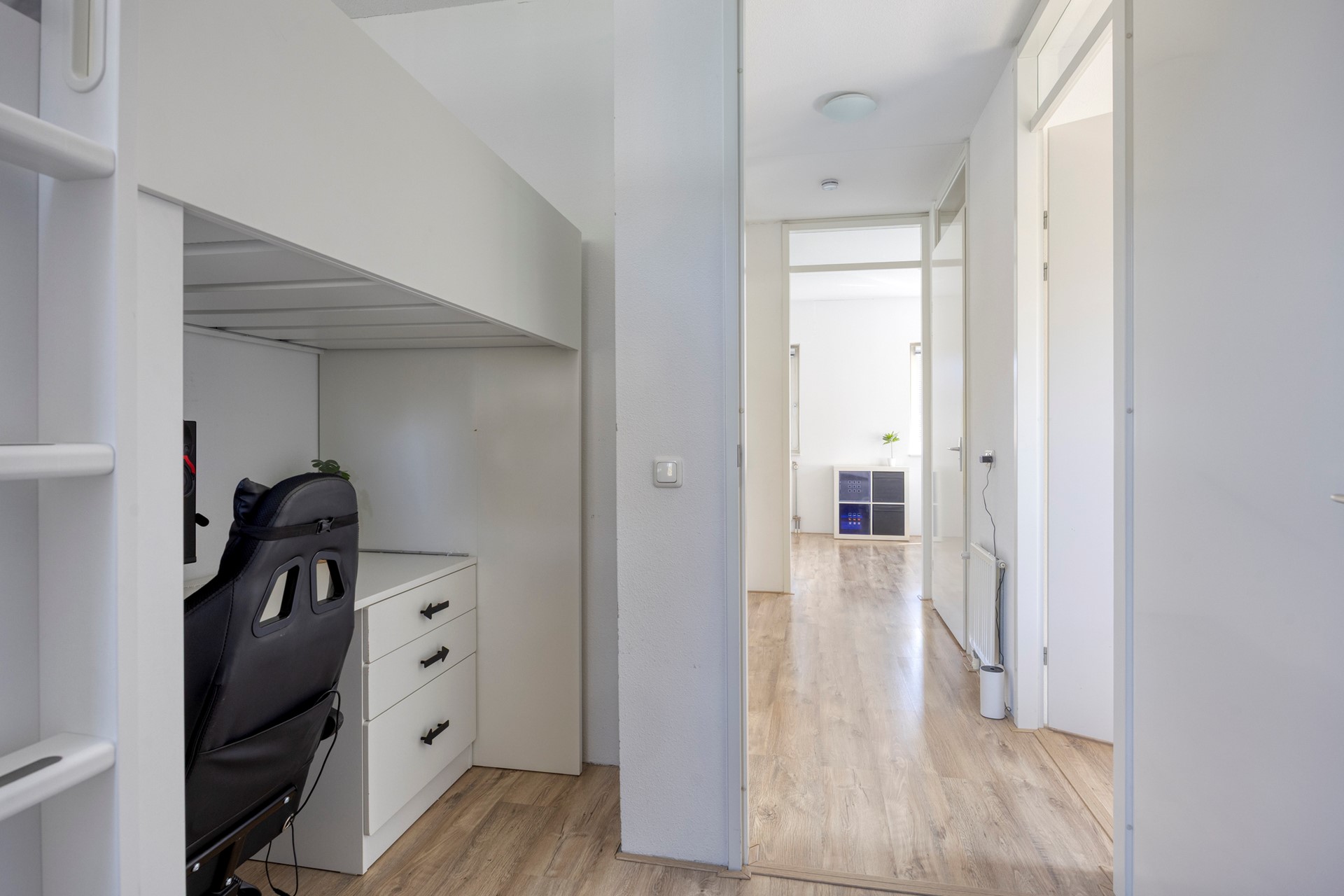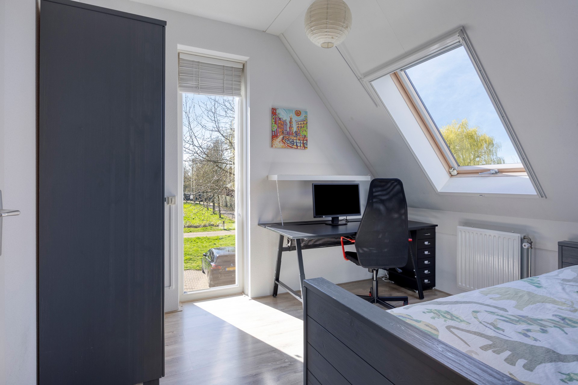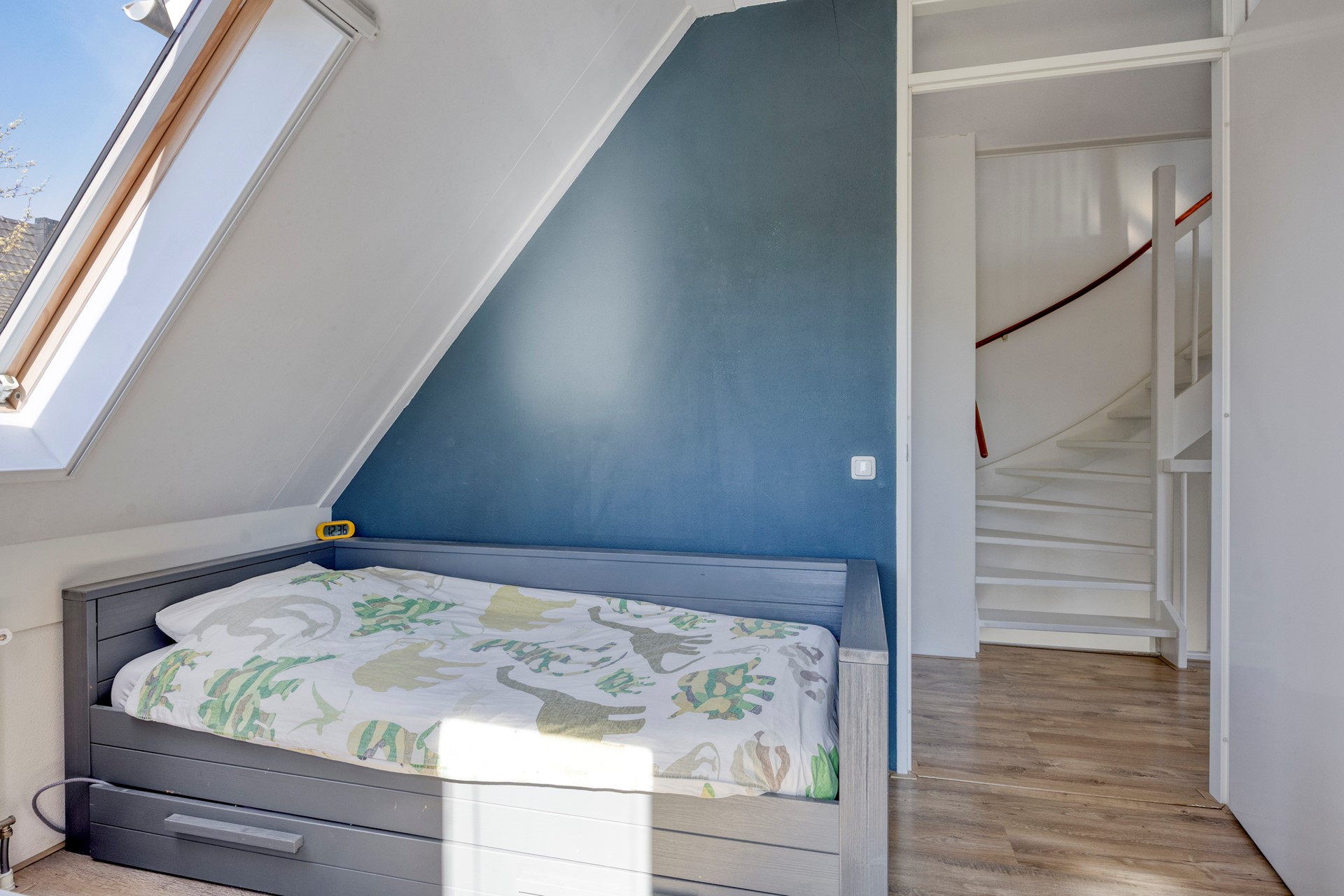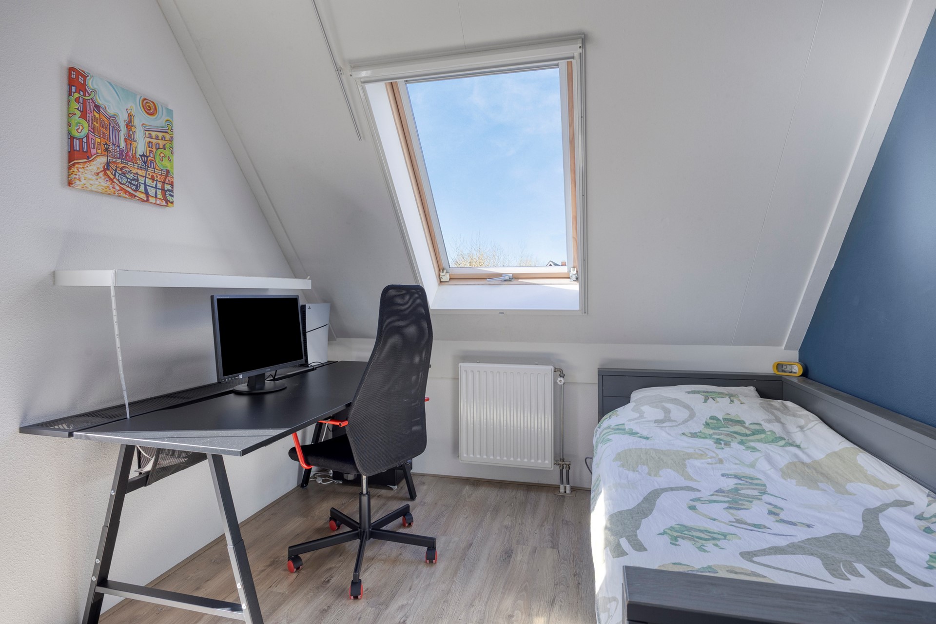 De huidige indeling als thuiswerkplek en speelkamer laat goed zien hoe multifunctioneel deze verdieping is. Met gemak creëer je hier een extra slaapkamer of hobbyruimte.