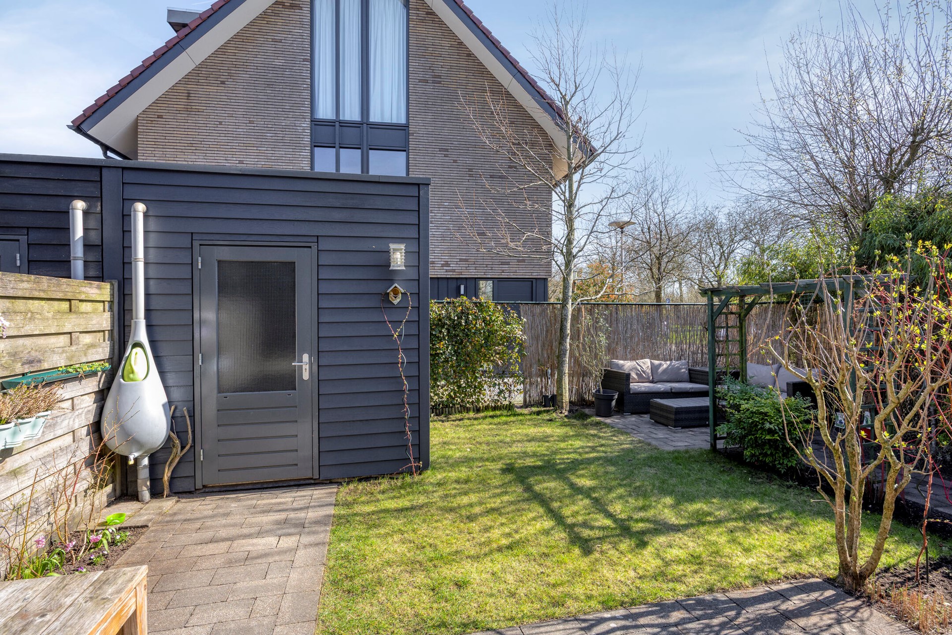 • Verzorgde en zonnige achtertuin met berging en achterom