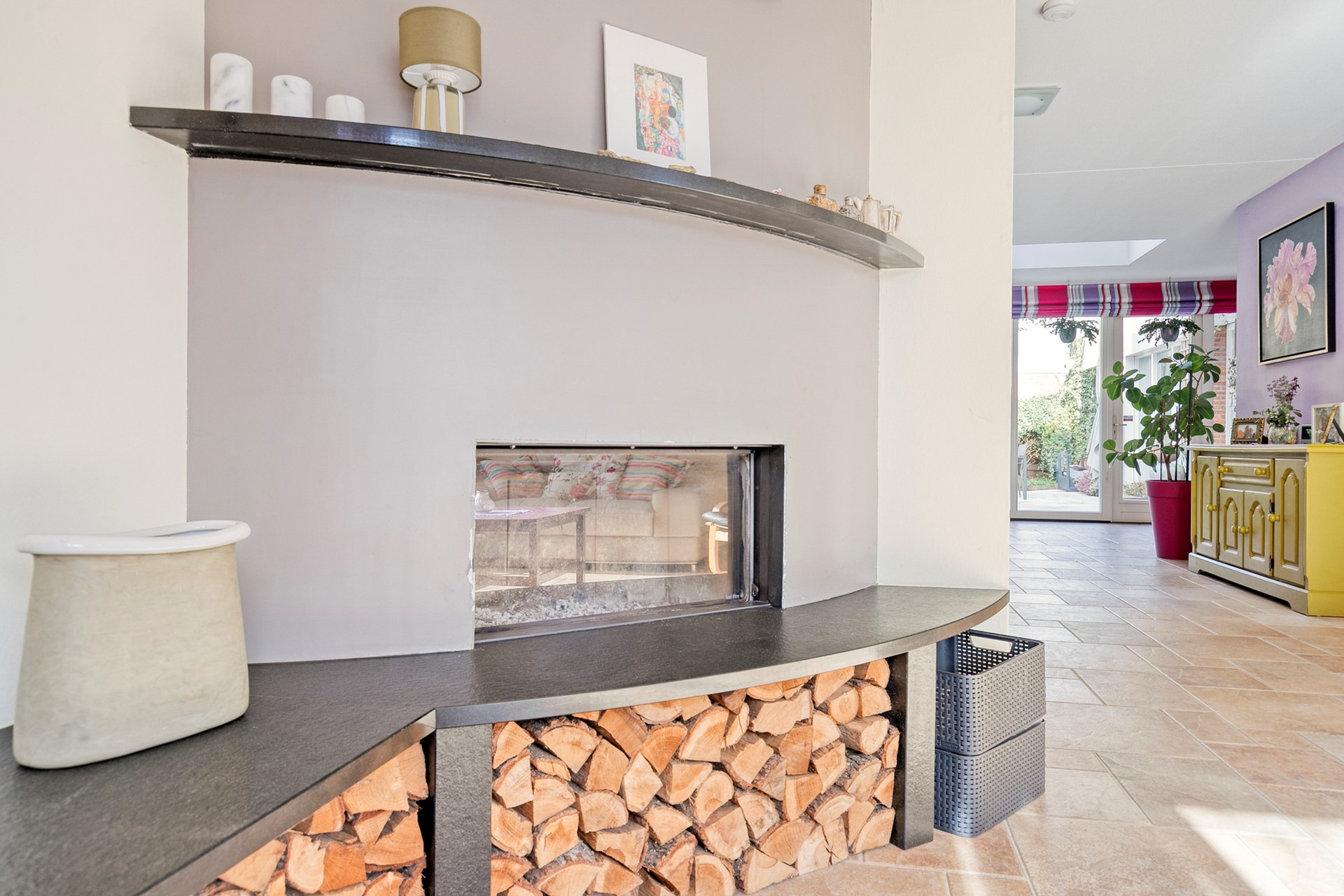 De sfeervolle woonkamer aan de voorzijde biedt ruimte voor een comfortabele zithoek rond de houthaard, een heerlijke plek om te ontspannen. Aan de achterzijde bevindt zich de lichte eethoek, voorzien van een grote glazen pui met loopdeur en een lichtkoepel, die zorgt voor een prachtig uitzicht op de diepe, zonnige achtertuin.