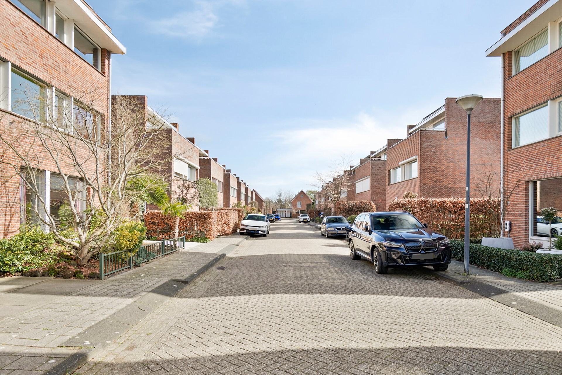 De diepe, besloten achtertuin ligt op het noordoosten en is fraai aangelegd met sierbestrating, groenpartijen, verlichting en een wateraansluiting. Door de diepte en de vrije ligging aan de zijkant ervaart u hier volop zon, rust en privacy. Op warme dagen zorgt een royaal inklapbaar zonnescherm van circa 4 x 6 meter voor een aangename, beschutte plek.