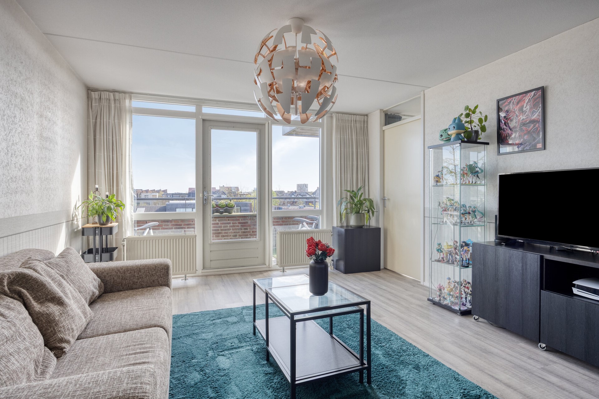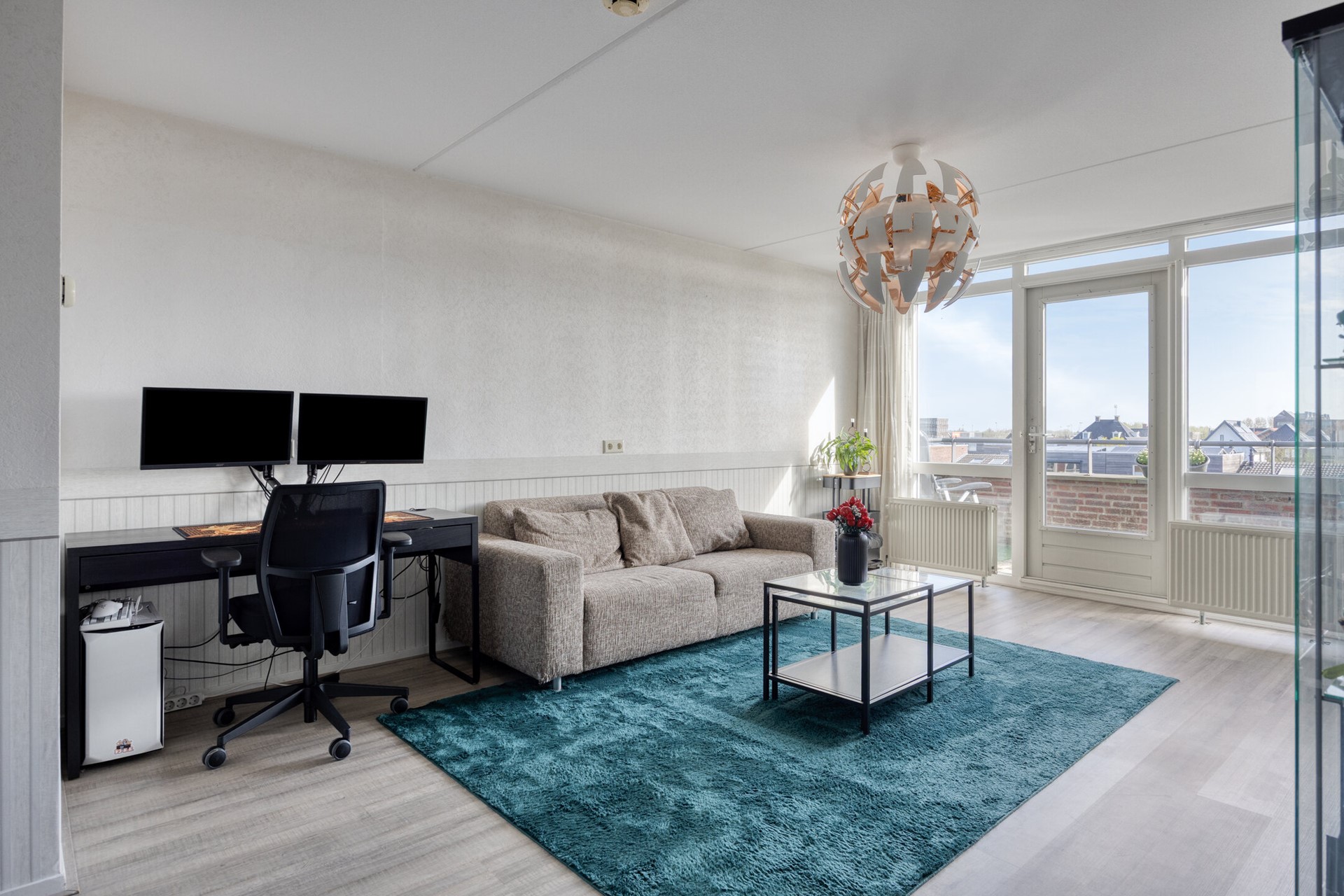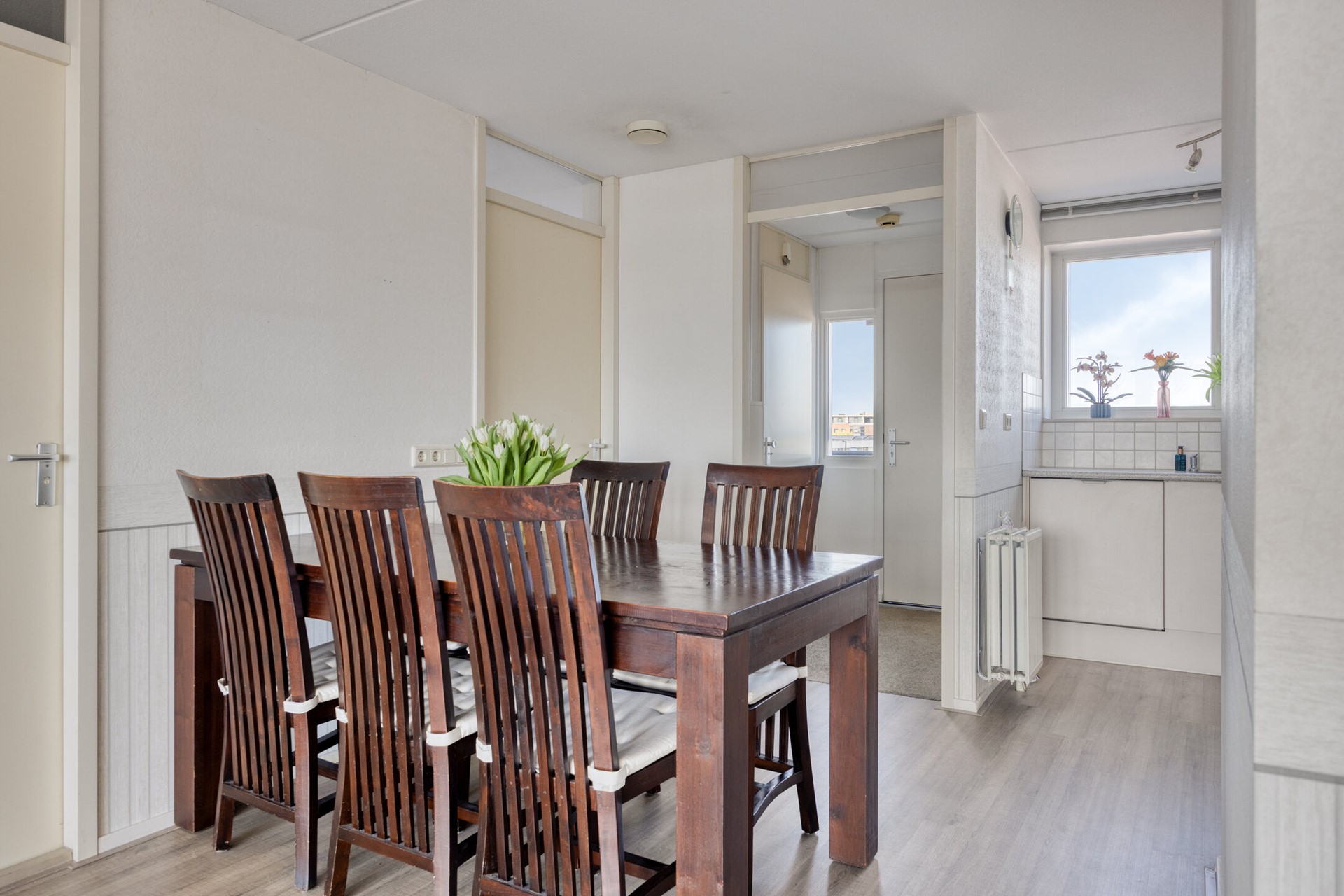 Via de woonkamer bereikt u het balkon op het oosten middels een openslaande deur. Hier kunt u heerlijk genieten van de ochtendzon, ideaal voor een ontspannen start van de dag.